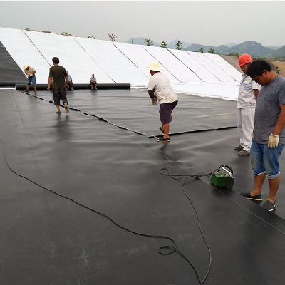 产品介绍: 高密度聚乙烯土工膜是以高密度聚乙烯树脂为原料,经过高温熔化、挤压、压延成一种防水阻隔型材料。颜色有白色和黑色。宽幅:1-8米。膜厚:0.30-2.50毫米。广泛使用在生活垃圾填埋